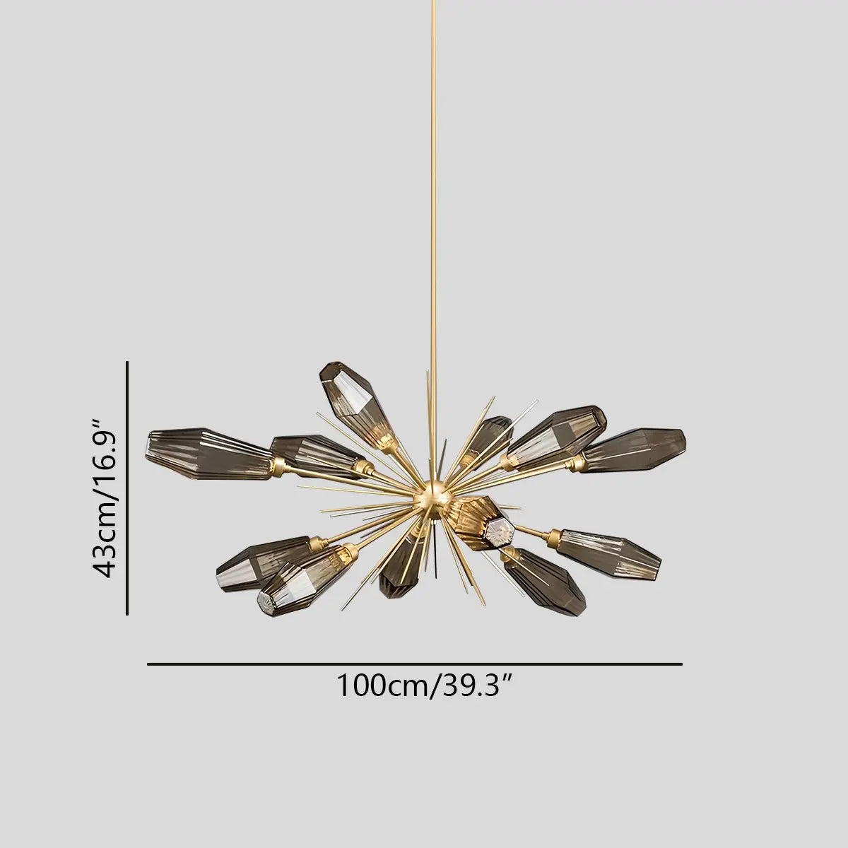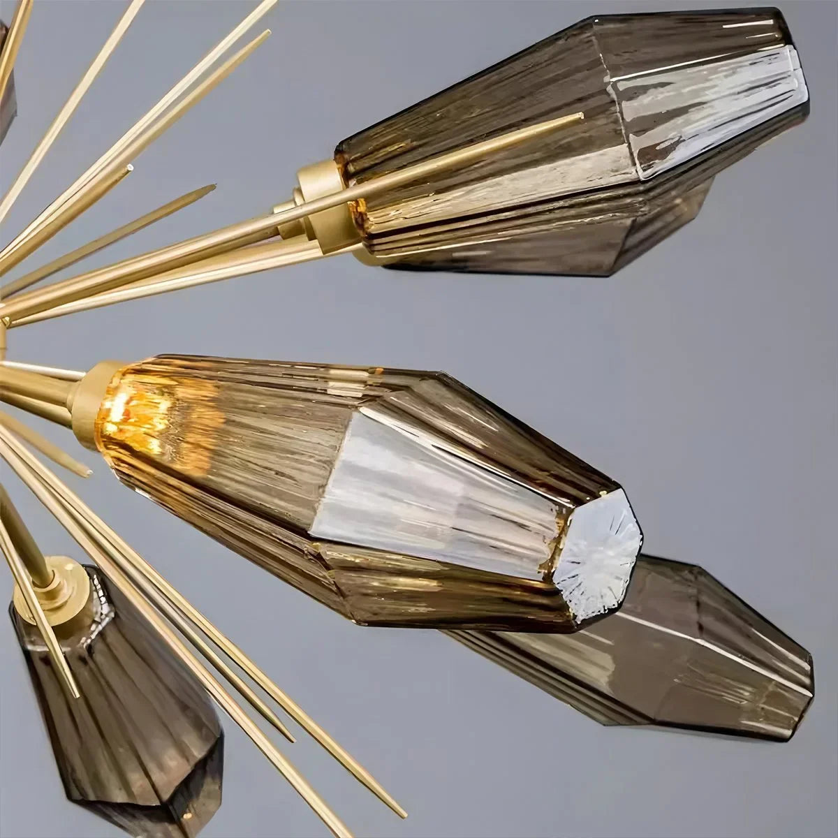 - Artisan-blown glass shades inspired by natural rock crystal