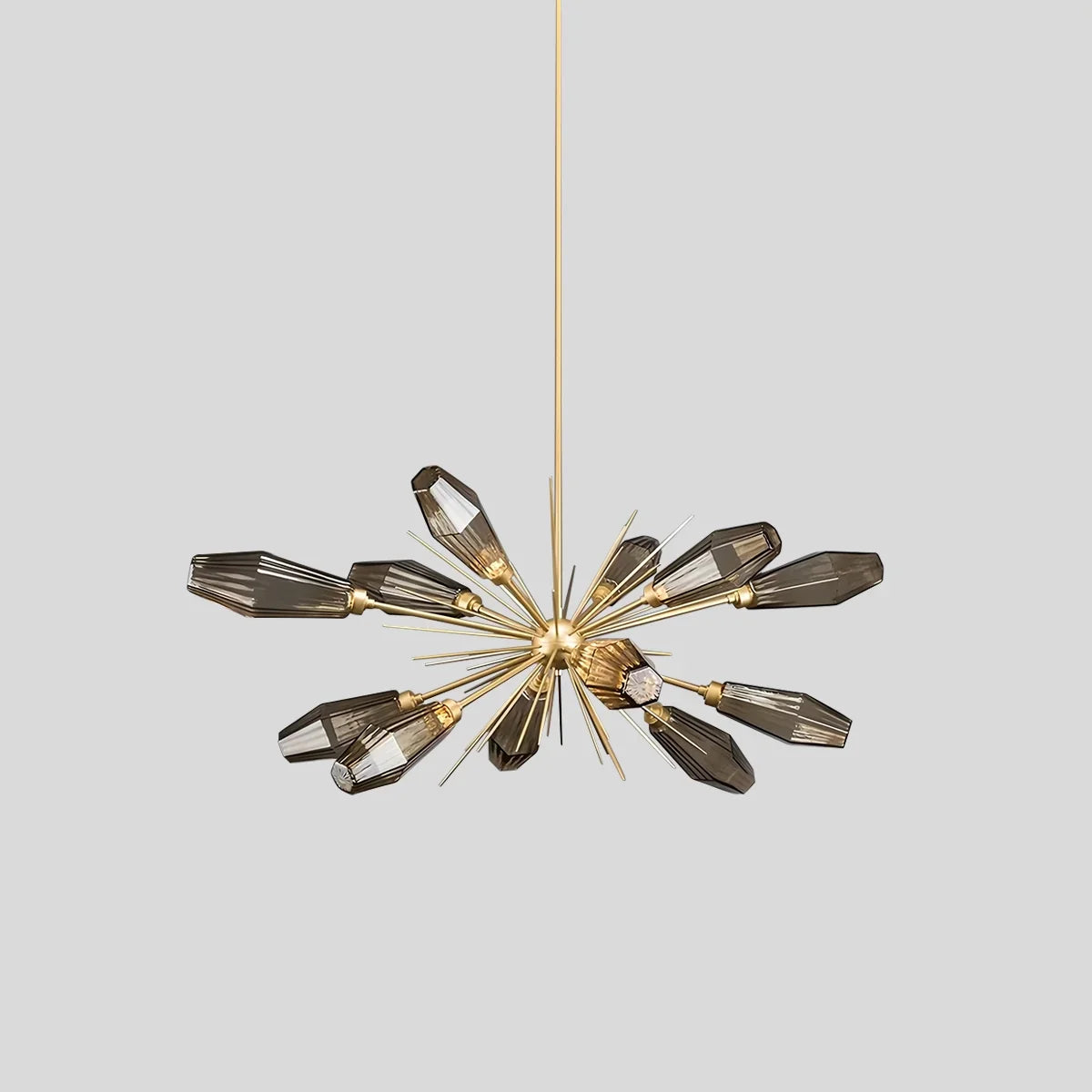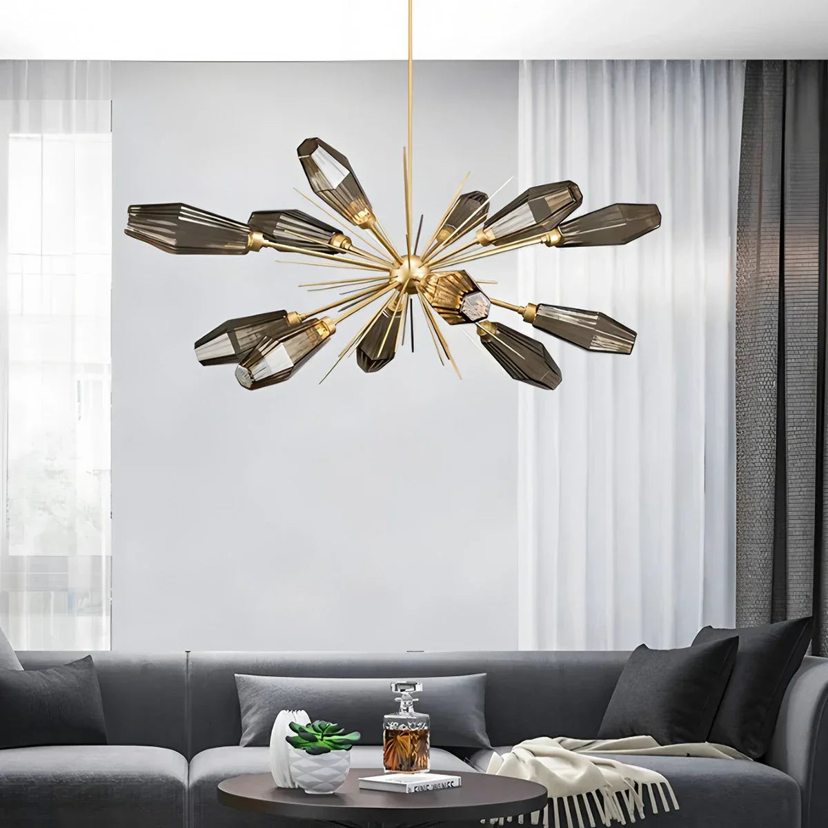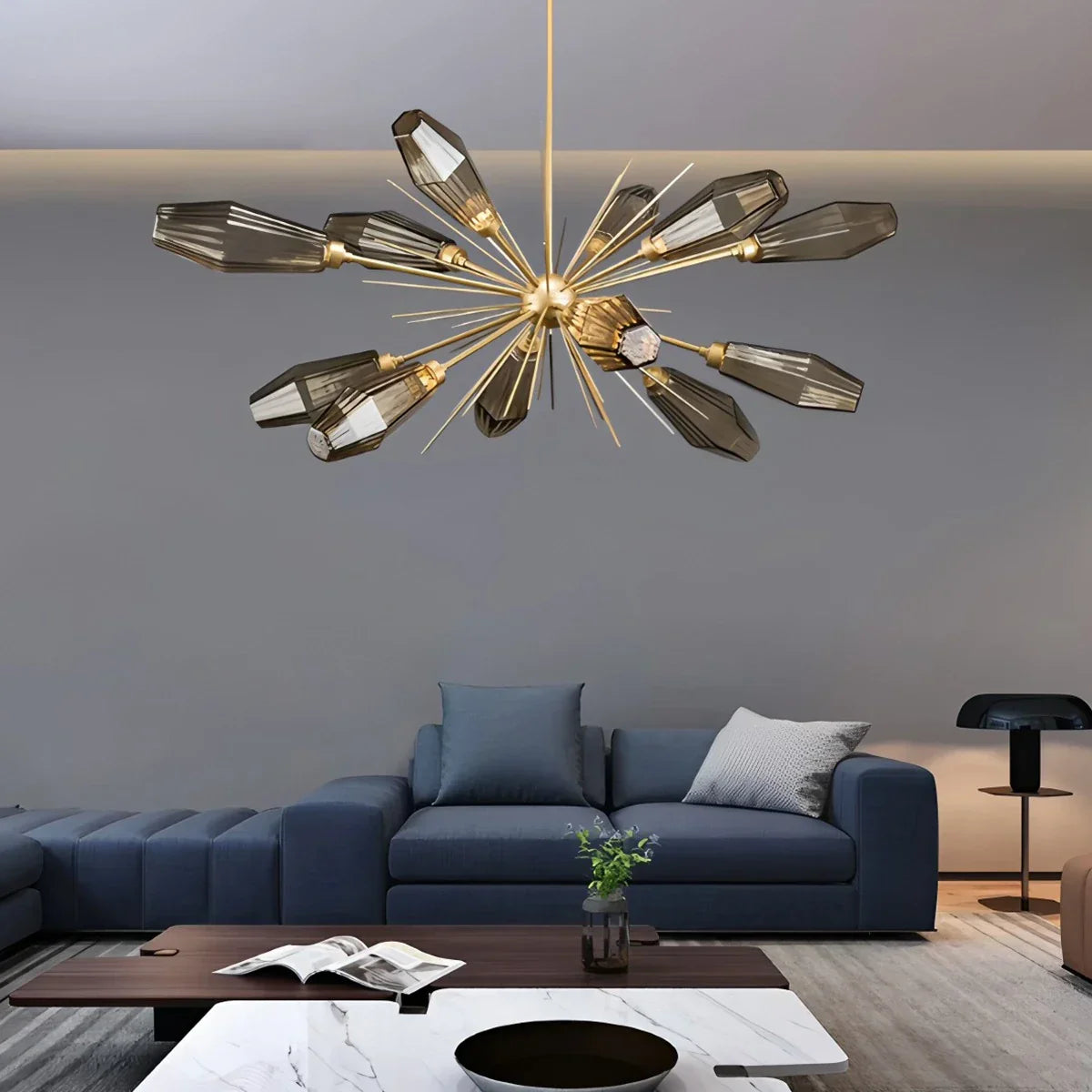 The Emopurevibe Kristal Chandelier infuses your space with refined glamor through its hexagonal, rock crystal-inspired glass shades. Each artisan-blown fixture evokes the natural beauty of quartz, casting radiant light with sculptural clarity. Ideal as a statement piece above a dining table, in a grand living room, or a serene bedroom, the Kristal offers a luxurious reinterpretation of classic chandelier design.