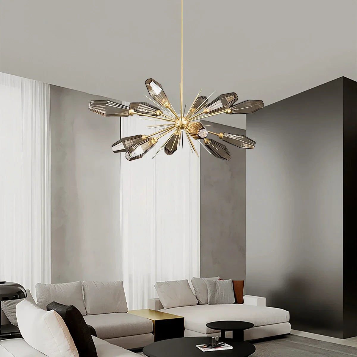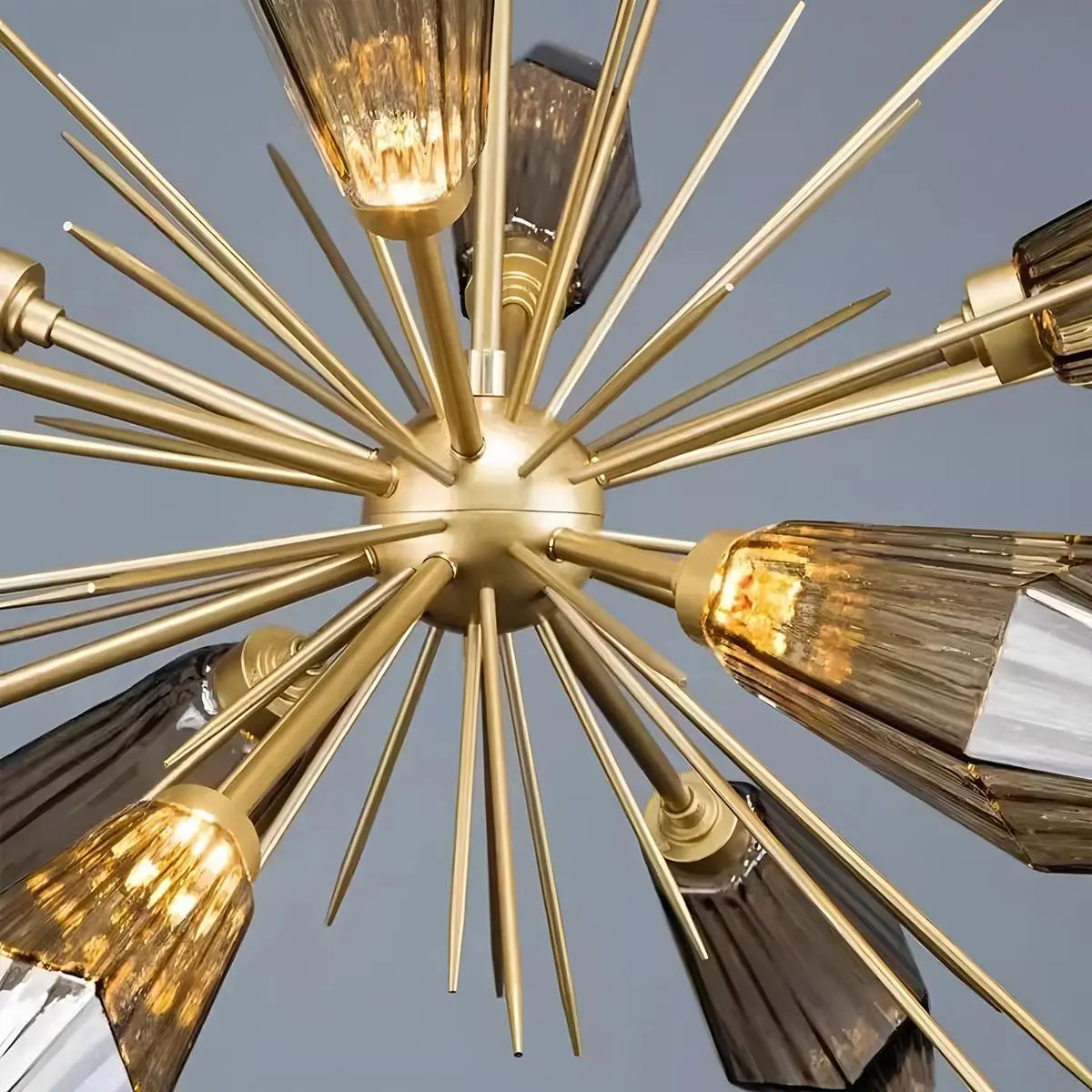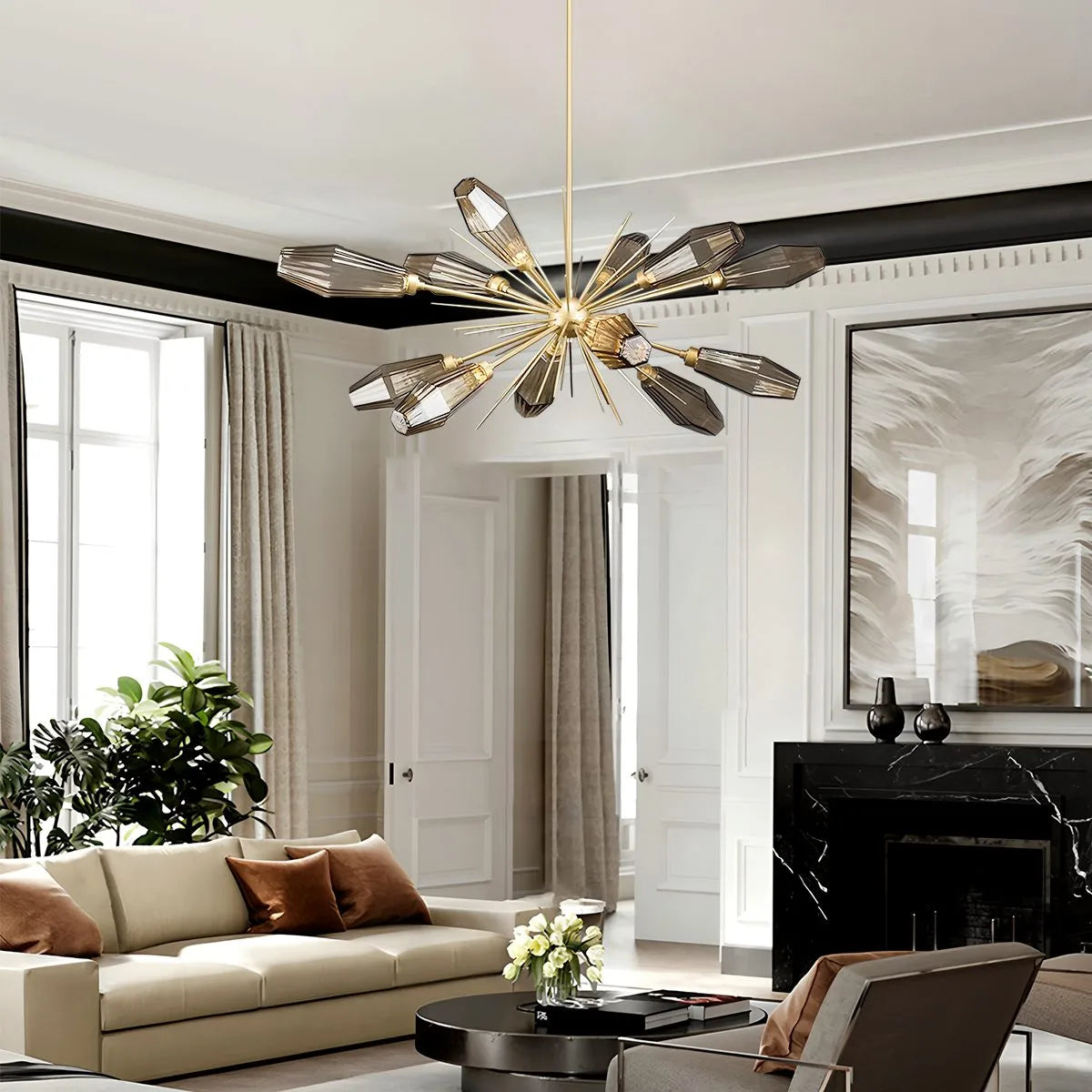 The Emopurevibe Kristal Chandelier infuses your space with refined glamor through its hexagonal, rock crystal-inspired glass shades. Each artisan-blown fixture evokes the natural beauty of quartz, casting radiant light with sculptural clarity. Ideal as a statement piece above a dining table, in a grand living room, or a serene bedroom, the Kristal offers a luxurious reinterpretation of classic chandelier design.