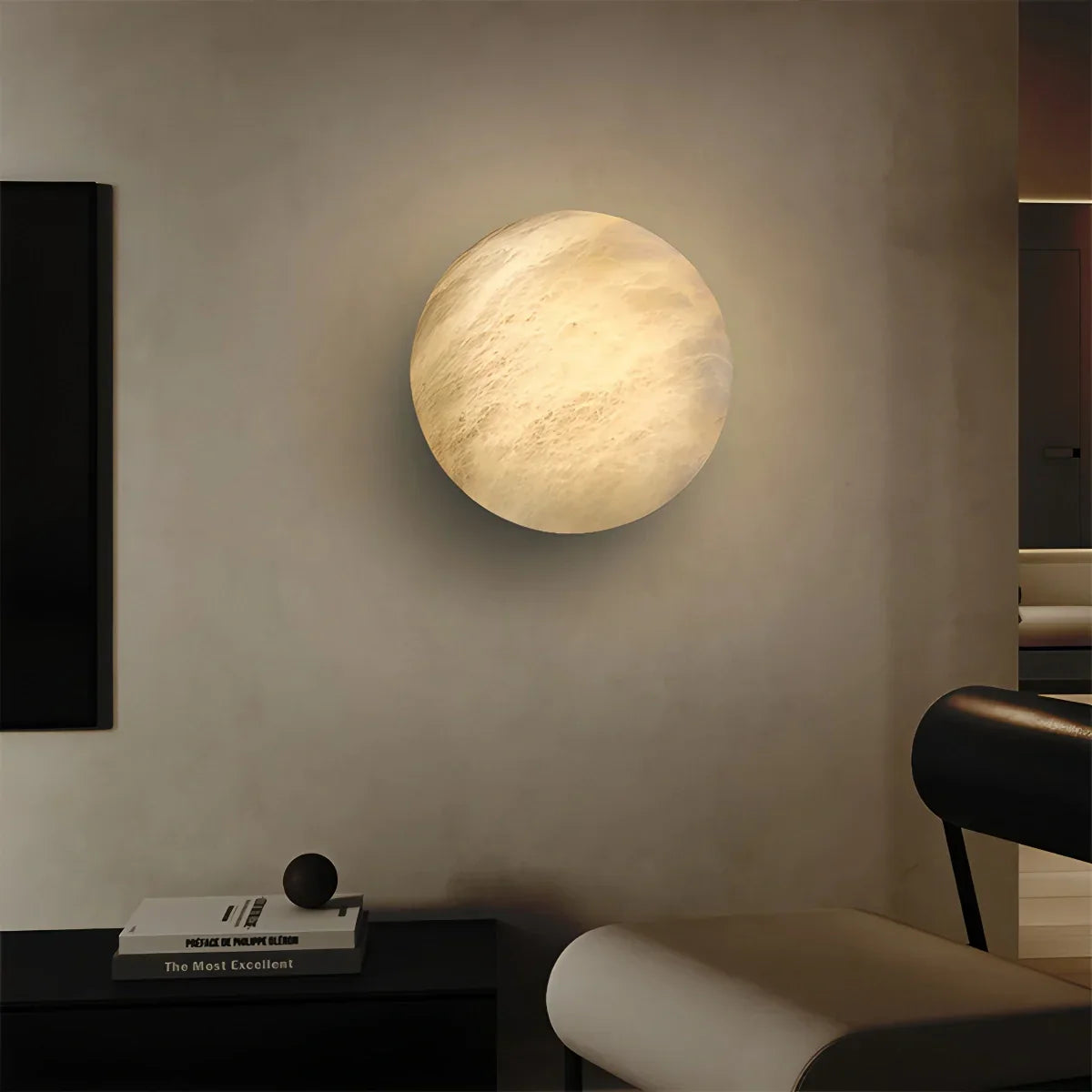 Emopurevibe Simple Round Spanish Alabaster Wall Light for Hallway